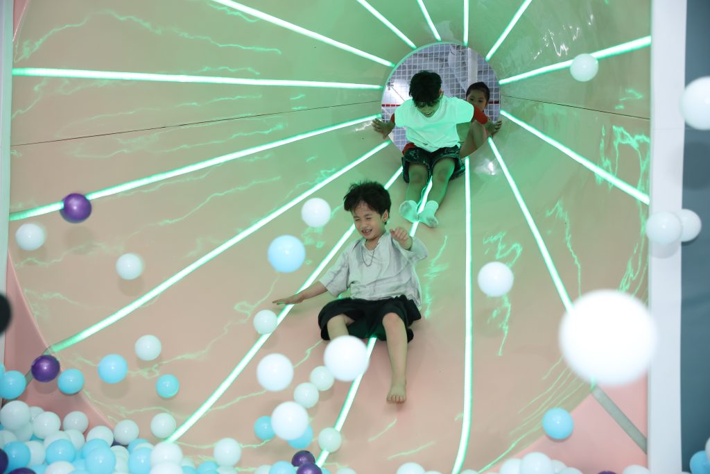 Tại đây, các bé sẽ được thỏa sức vui chơi trong không gian hiện đại và an toàn, nổi bật với trường đua xe F1 độc quyền cùng nhiều trò chơi kết hợp vận động và học hỏi như nông trại vui vẻ, nhà banh liên hoàn, cưỡi vịt,… Mỗi hoạt động đều mang đến những trải nghiệm mới lạ, giúp bé vừa giải trí vừa phát triển thể chất, tư duy và kỹ năng một cách tự nhiên nhất.
